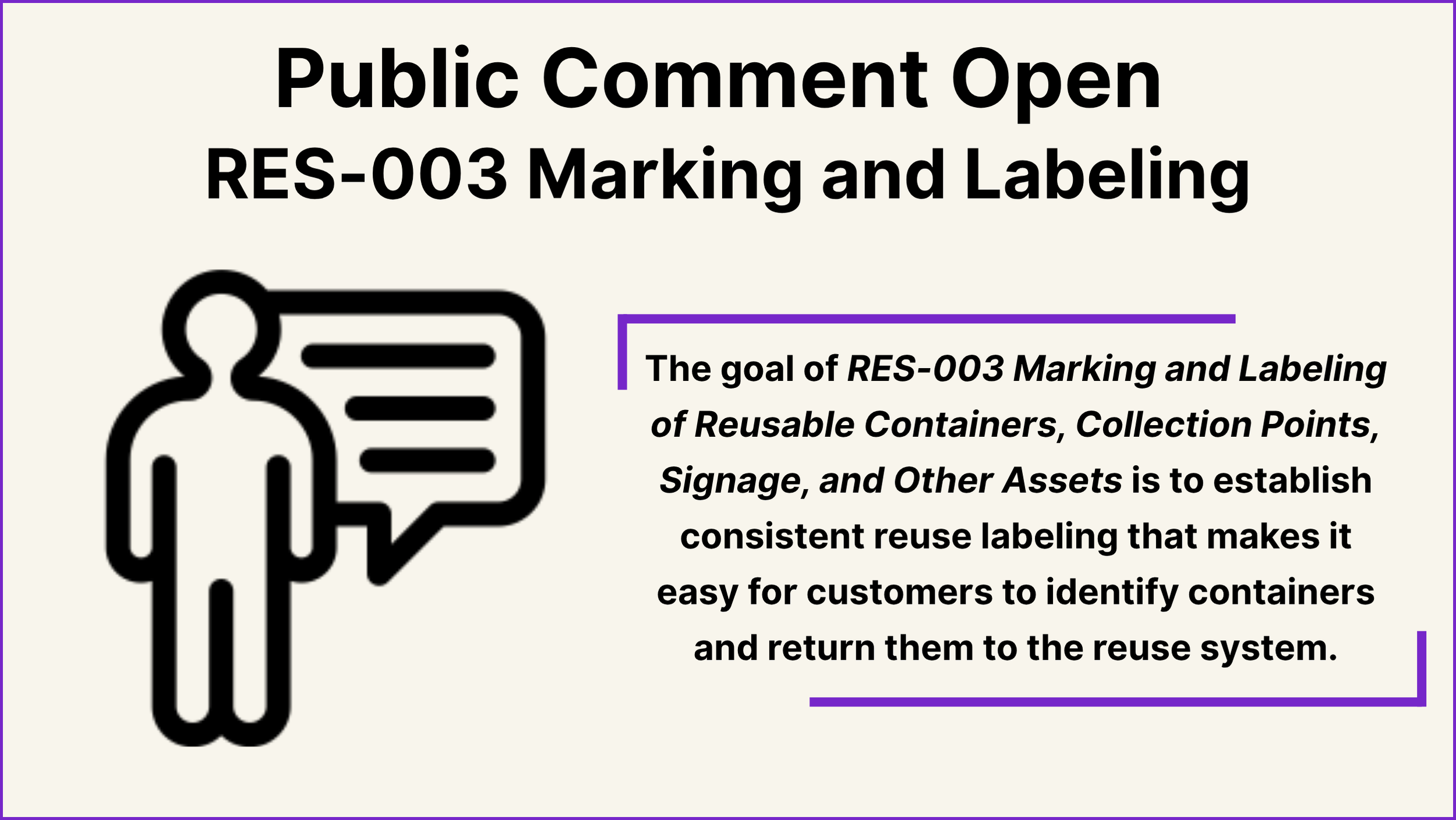 The PR3 Marking and Labeling standard is now available for public comment. This standard provides the specifications for marking and labeling containers, collection points, and signage in a reusable packaging system.