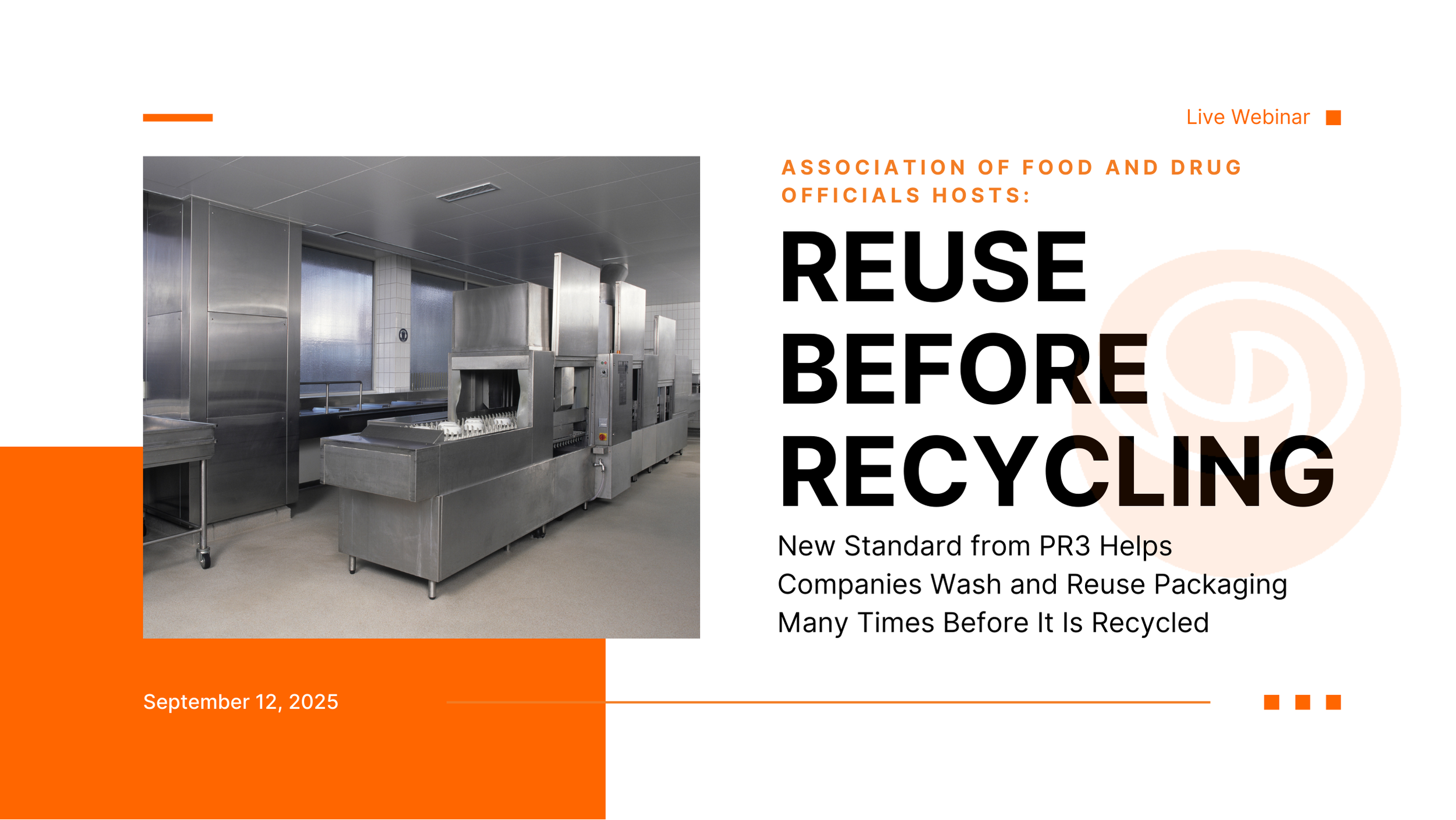 PR3’s washing standard, designated as an American National Standard, is the first specifically created for reusable packaging operations to help ensure their safety, consistency, interoperability, and effectiveness. It offers food service inspectors a comprehensive checklist of what to look for when inspecting washing facilities for reusable packaging.